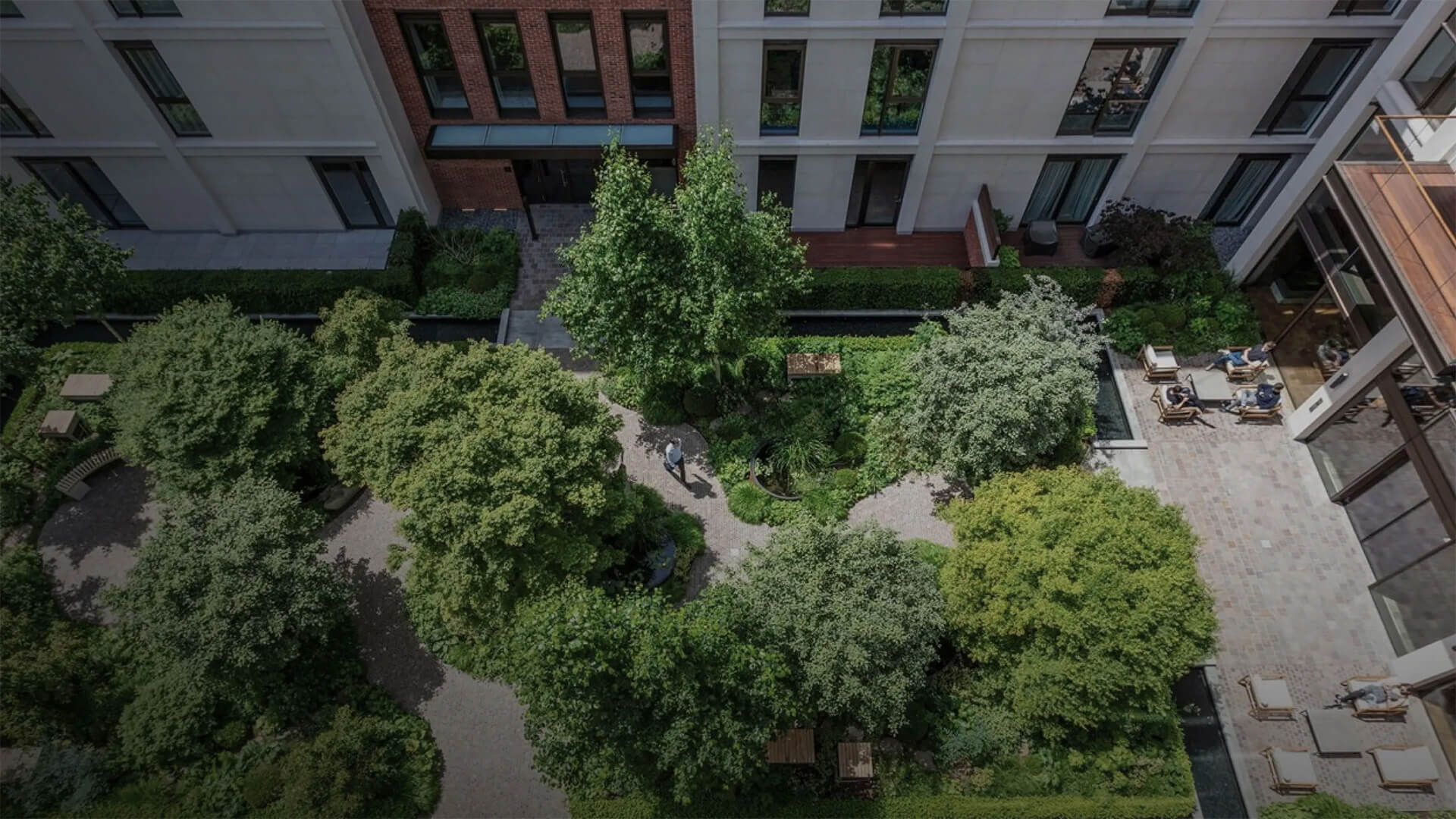 Галерея зелени плавно переходит в уютную миниатюрную площадь, куда выходят внутренние окна почти всех корпусов, обеспечивая жителям ежедневное наслаждение живописными видами прямо из дома.